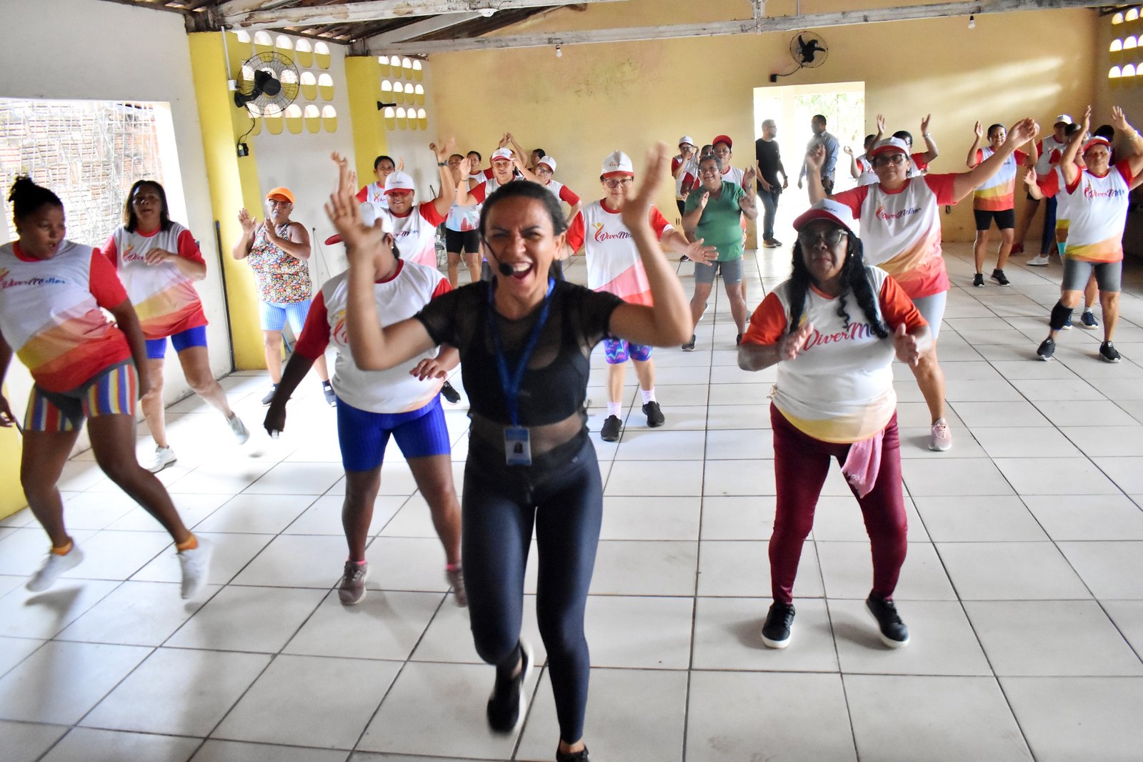 As aulas incluem exercícios funcionais com muita animação, acompanhados por músicas que tornam o momento mais leve e prazeroso.