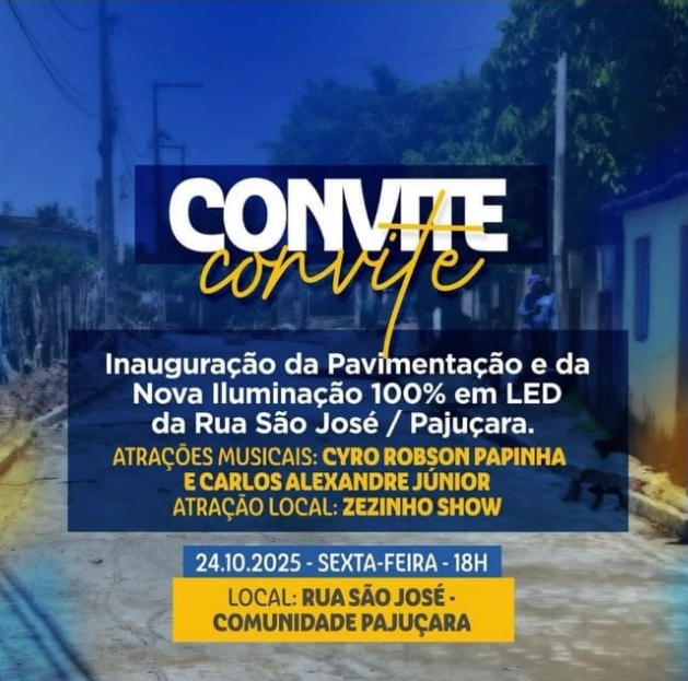 O Prefeito de São Gonçalo do Amarante, Dr Jaime Calado convida toda população para a inauguração da pavimentação e da nova iluminação da Rua São José / Pajuçara.