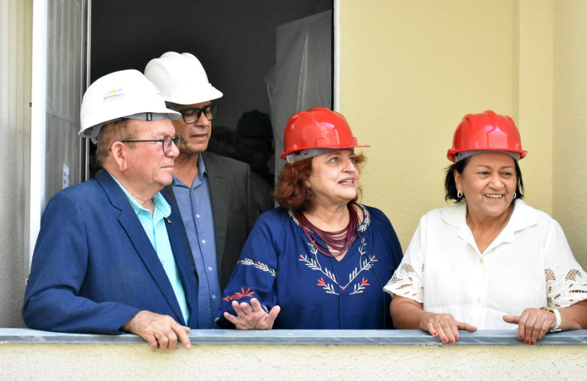 Na tarde desta sexta-feira (20), o prefeito Jaime Calado recebeu a vice-presidente de Habitação da Caixa Econômica Federal, Inês Magalhães, acompanhada da governadora Fátima Bezerra, para uma visita técnica às obras dos residenciais Maria Belo e Teodósio Henrique, em São Gonçalo do Amarante.